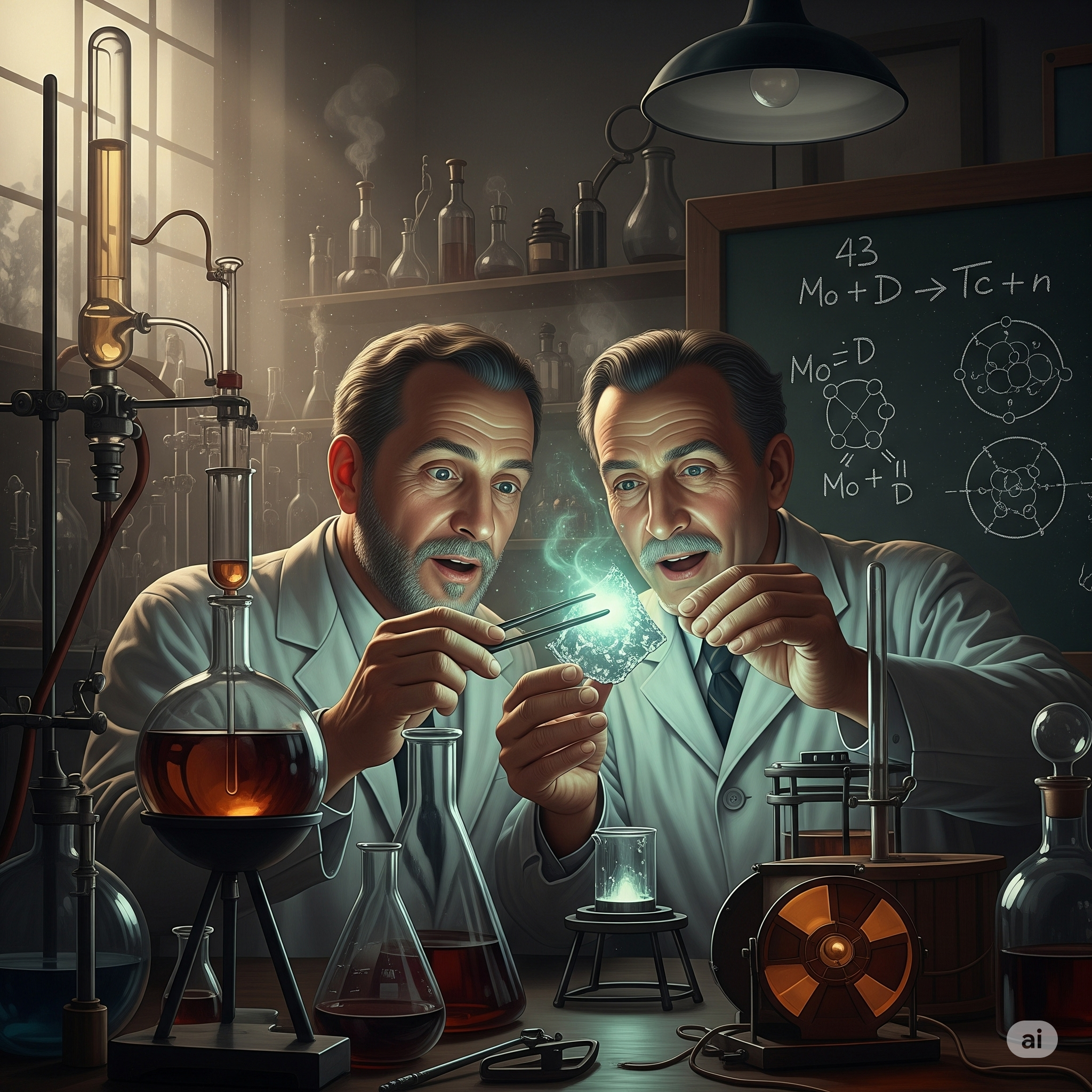 핵심 원리 및 발견의 순간: 1936년, 세그레는 미국 버클리 방사선 연구소의 입자가속기(사이클로트론)에서 방사선을 쬐었던 몰리브데넘 표본을 얻어 이탈리아 팔레르모 대학으로 가져왔습니다. 그의 아이디어는 간단했습니다. 안정한 몰리브데넘(원자번호 42번) 원자에 중수소(양성자 1개, 중성자 1개로 이루어진 수소) 입자를 충돌시키면, 몰리브데넘의 원자핵이 양성자 1개를 흡수하여 원자번호 43번의 새로운 원소로 변할 것이라는 가설이었습니다.
