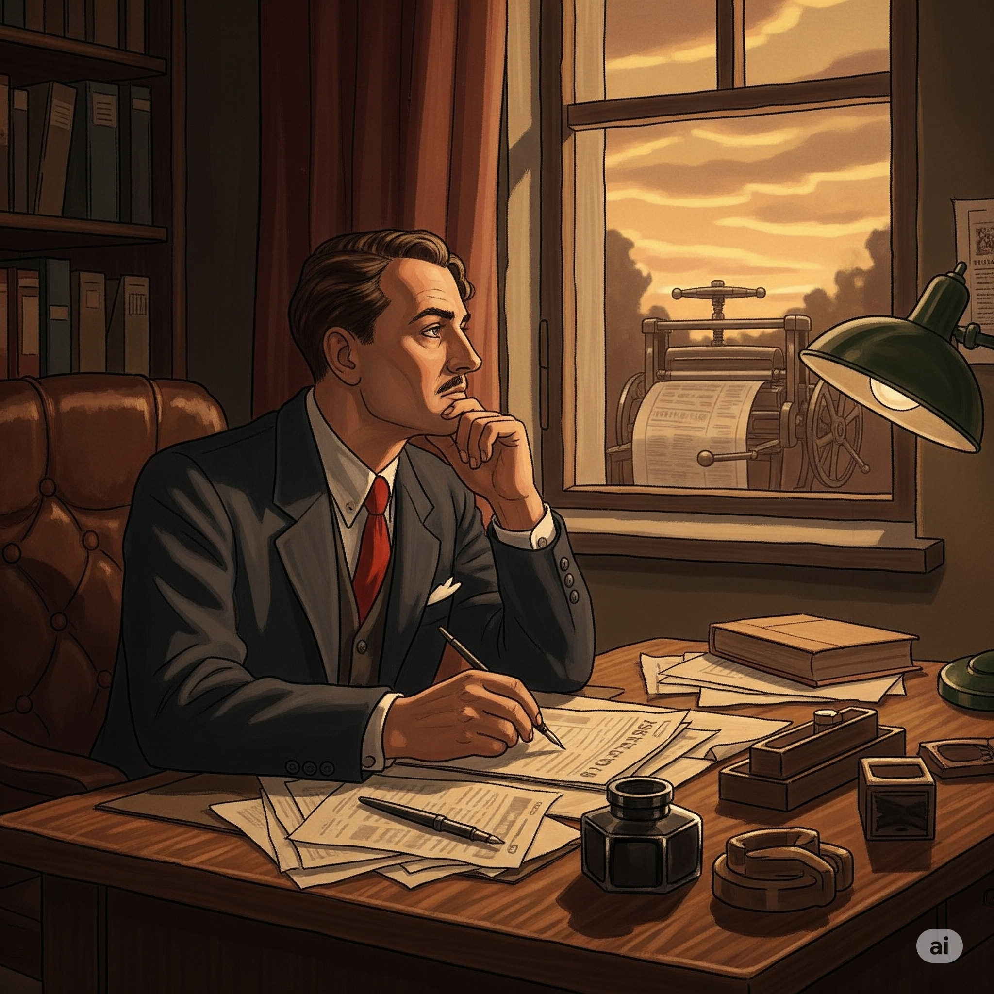 어느 날, 비로는 인쇄소에서 신문이 찍혀 나오는 모습을 유심히 보게 됩니다. 그는 한 가지 놀라운 사실을 발견했어요. 바로 신문 인쇄용 잉크는 종이에 닿자마자 빠르게 마르고 전혀 번지지 않는다는 것이었죠! "바로 이거다!" 그는 무릎을 쳤습니다.