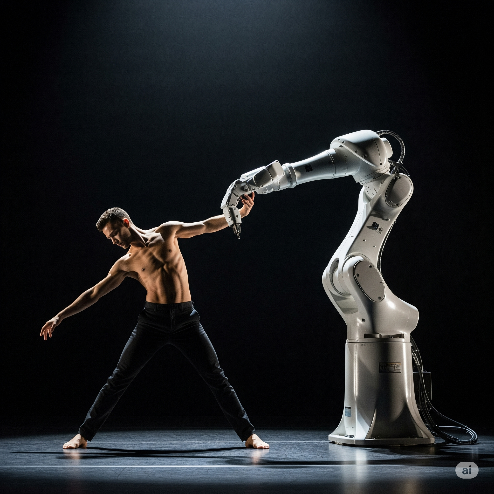그렇다면 무대 위에서 인간과 로봇은 어떤 역할을 맡을까요? 둘의 협업은 우리가 흔히 생각하는 '파트너'의 개념을 완전히 새롭게 정의합니다. 한쪽은 예측 불가능한 생명력을, 다른 한쪽은 완벽한 정확성을 가지고 있으니까요.