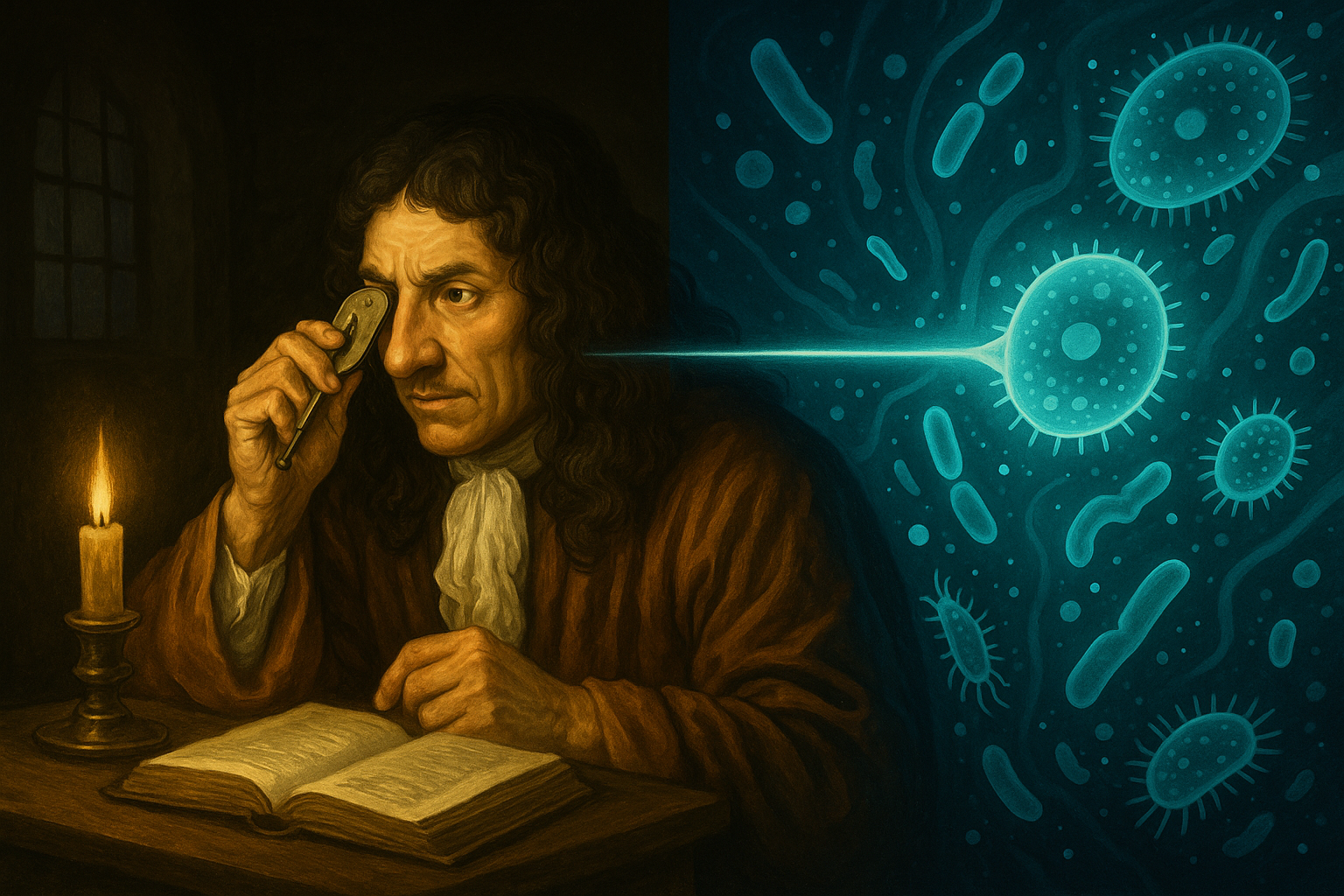 얀센 부자가 현미경의 '형태'를 만들었다면, 그 안에 담긴 '세계'를 처음으로 발견한 사람은 네덜란드의 직물 상인 안토니 판 레이우엔훅(Antonie van Leeuwenhoek)입니다. 정식 과학 교육을 받지 않았던 그는 취미로 렌즈를 깎는 일에 몰두했어요.