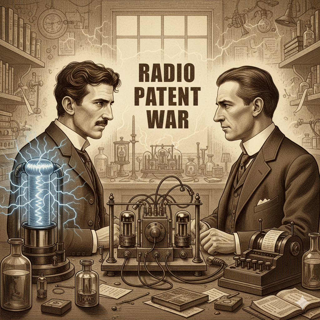 "어? 그럼 마르코니가 테슬라의 기술을 이용한 건가요?" 라는 의문이 드실 텐데요. 네, 바로 그 지점에서부터 길고 긴 특허 전쟁이 시작됩니다. 마르코니가 1900년 미국에 라디오 특허를 출원했을 때, 특허청은 테슬라가 이미 관련 특허를 보유하고 있다는 이유로 이를 거절했습니다.