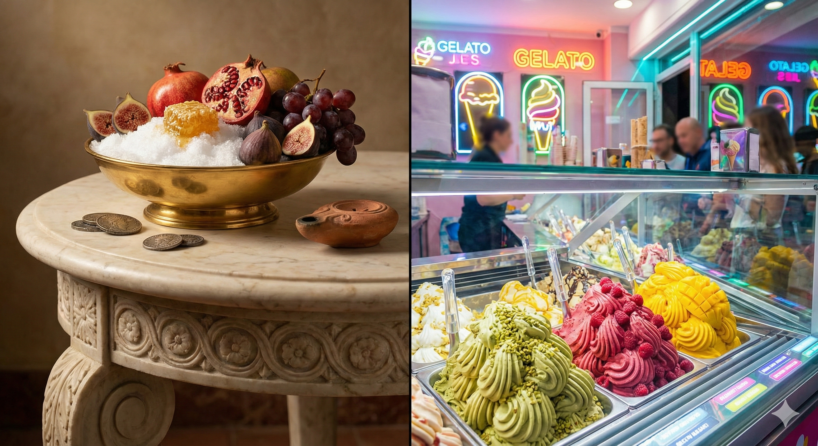 가져온 눈에 꿀, 과일 즙, 견과류 등을 섞어 먹었다고 하는데, 이는 엄밀히 말하면 지금의 부드러운 우유 아이스크림보다는 '그라니타(Granita)'나 '셔벗(Sherbet)'에 가까운 형태였습니다. 냉장고가 없던 시절, 한여름에 얼음을 먹는다는 것은 절대 권력의 상징이었죠.